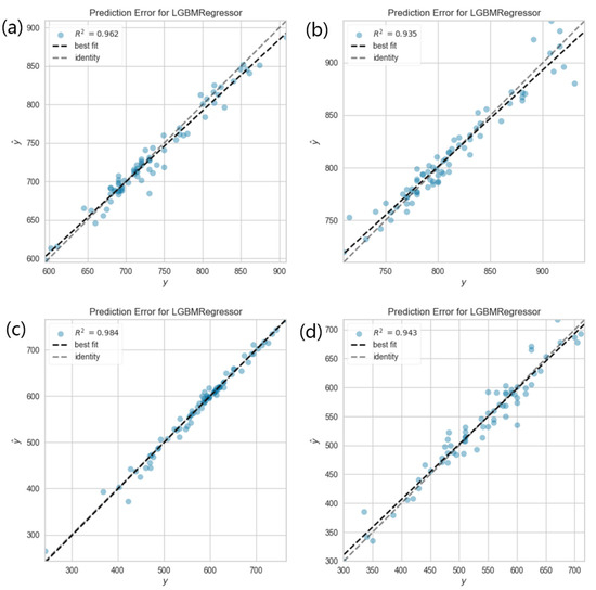 In the present work, an improved version of the gradient-boosting method LightGBM was chosen as the machine learning algorithm [36]. LightGBM yields better training speed and prediction accuracy by using improved measures such as histogram-based algorithms, which bucket the continuous values of features into discrete bins, and a leaf-wise tree growth strategy wherein the leaf with maximum loss is selected to grow and, therefore, the number of leaves at each level is not always the same [37,38].