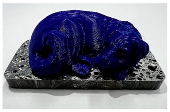 In this study, it was found that the 3D printer can directly print resin on aluminum foam with a certain degree of high bonding strength. By using a 3D printer, it is expected that a resin with a complex shape such as the sleeping dog shown in Figure 10 can be combined with aluminum foam, allowing the desired product shape to be realized freely.