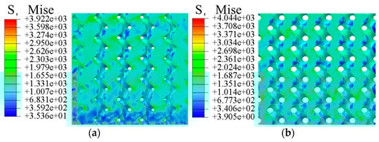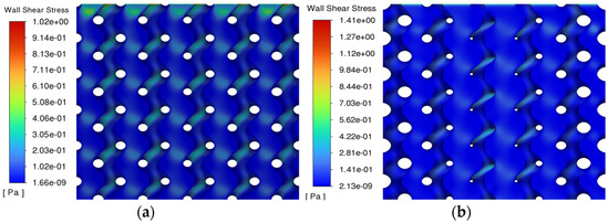 Shear stress distribution of homogeneous and gradient porous structures: (a) Homogeneous porous structure; (b) Gradient porous structure.