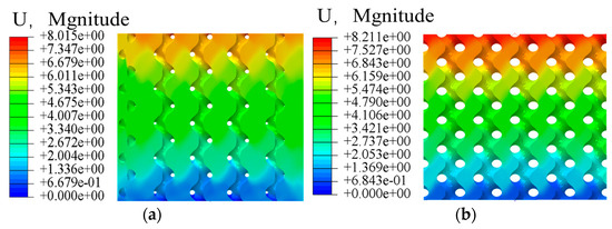 Deformation of homogeneous, gradient porous structure: (a) Gradient porous structure; (b) Homogeneous porous structure.