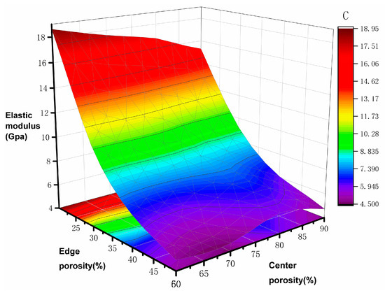 - The mechanical properties of the gradient porous structure have a more significant effect on the elastic modulus than the edge porosity, and the effect is more meaningful when the edge porosity is in the range of 20–35%.