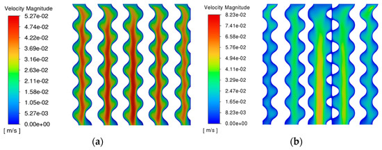 Flow rates of homogeneous and gradient porous structures: (a) Homogeneous porous structure; (b) Gradient porous structure.