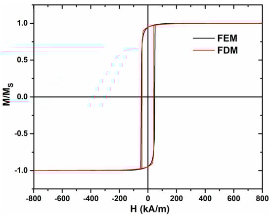 Micromagnetic simulations of the hysteresis loop using both methods (FEM and FDM).