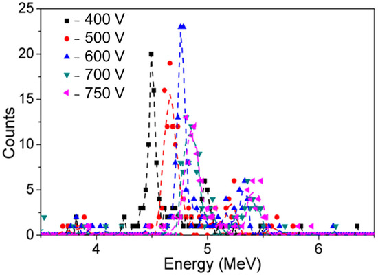 - Zaťko, B.; Hrubčín, L.; Šagátová, A.; Osvald, J.; Boháček, P.; Kováčová, E.; Halahovets, Y.; Rozov, S.V.; Sandukovskij, V.G. Study of Schottky barrier detectors based on a high quality 4H-SiC epitaxial layer with different thickness. Appl. Surf. Sci. 2021, 536, 147801. [Google Scholar] [CrossRef]