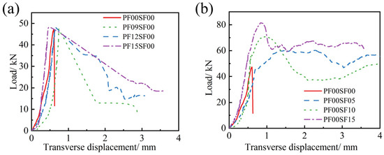 Splitting tensile load–displacement curve of FRAC with single fiber: (a) PF; (b) SF.