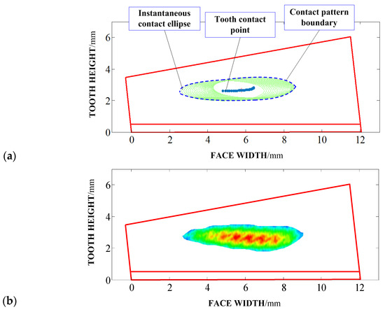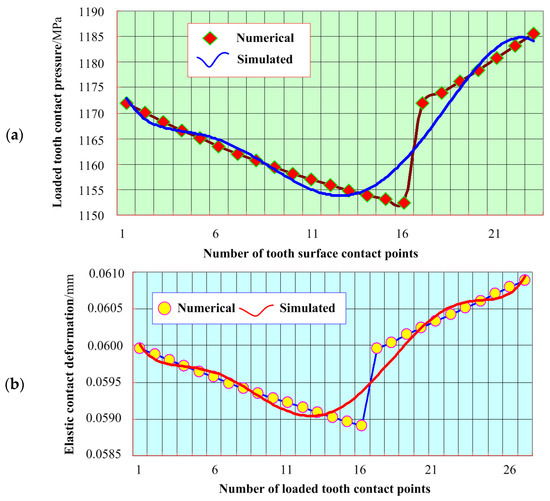 In the past few decades, in order to acquire high-loaded meshing transmission performances, many researchers have proposed many methods for complex loaded contact behavior analysis [8,9,10,11]. Gleason Works [12] first applied a prescribed parabolic transmission error curve to improve the contact motion path. Litvin [13] developed an accurate geometric tooth flank model of a spiral bevel gear with the applications of the differential geometry method and gearing theory, where the loaded contact stress and root bending stress were determined. Wink and Serpa [14] proposed an accurate composite deformation determination of the whole contact flank. The sum of deformation caused by the load at each point was calculated to determine the loaded transmission error. Wu and Tsai [15] developed loaded contact pressure distribution, which was always one of the important standards for loaded meshing transmission performances. Kolivand and Kahraman [16] proposed a prediction approach to the loaded contact pattern and time-varying meshing stiffness. However, the loaded tooth surface contact problem has not been effectively dealt with since loaded contact stresses underneath the tooth surface have not been taken into account.