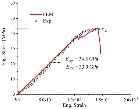 In this section, meso-scale FEM simulations were performed using the commercial FE software Abaqus 6.12/Explicit [] with a displacement condition in the vertical direction applied to the upper rigid plate in the compressive tests. The experimental results of the strain and fractures were exhibited with the field on the surface of the specimens calculated using the DIC method.