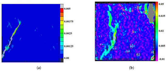 Without considering the couple behavior between the normal and shear components, the off-diagonal terms in the elasticity matrix, , can be set as zero. Thus, the elastic behavior of cohesive elements can be rewritten as Equation (15):