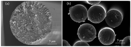 SEM images of carbon fibers: (a) mesophase pitch-based carbon fibers, (b) PAN-based carbon fibers.