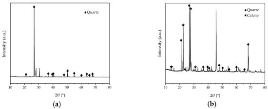 XRD spectrum: (a) loose aeolian sand; (b) MICP-solidified aeolian sand.