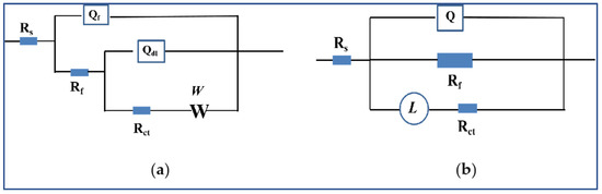 Effective fitting circuit diagram of electrochemical impedance spectra of homogenized (a) and extruded (b) 1100 aluminum alloys.