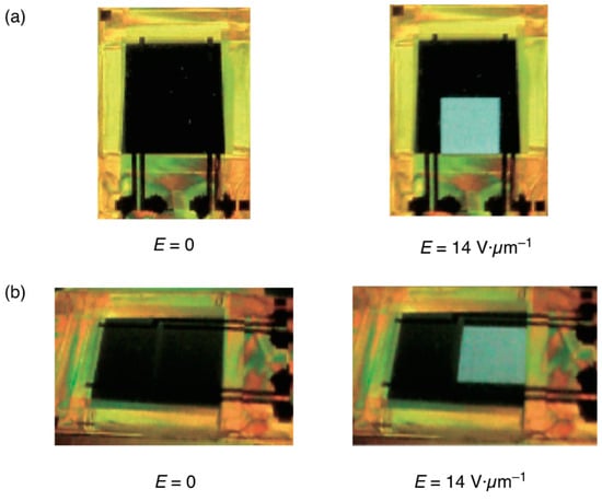 - Rao, L.; Ge, Z.; Gauza, S.; Chen, K.-M.; Wu, S.-T. Emerging liquid crystal displays based on the Kerr effect. Mol. Cryts. Liq. Cryst. 2010, 527, 186–198. [Google Scholar] [CrossRef]