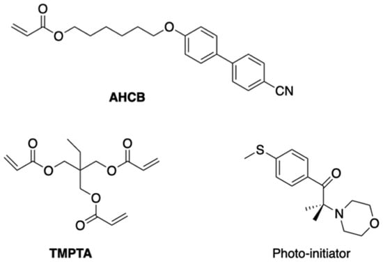 Molecular structures of AHCB, TMPTA, and a photoinitiator.