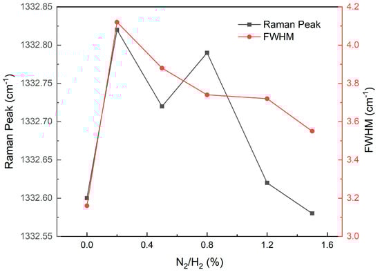 | Samples | Level of Nitrogen Doping (N2/H2)/% | CH4 Flow Rates/sccm | Time/h | Temperature/°C | Power/kW | Pressure/kPa |