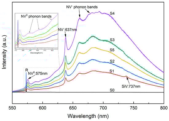 - Singh, S.; Catledge, S.A.; Singh, S.; Catledge, S.A. Silicon vacancy color center photoluminescence enhancement in nanodiamond particles by isolated substitutional nitrogen on {100} surfaces. J. Appl. Phys. 2013, 113, 044701. [Google Scholar] [CrossRef]