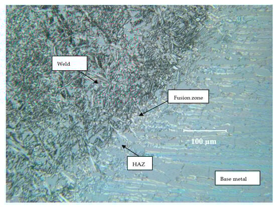 Weldments of the three alloys were prepared via an arc welding process (a gas tungsten arc welding (GTAW) or manual metal arc welding (MMAW) process) by a speciality welding company (John Beever Pty. Ltd., Melbourne, VIC, Australia). A section of a typical welded plate is shown in Figure 1.