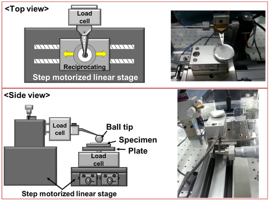 Schematic design and real photo image (top view and side view) of reciprocating-type tribotester.