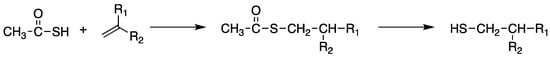 The addition of hydrogen sulfide to an olefin affords a small yield of thiol, which has the structure predicated by Markovnikov’s rule [47,48] (Scheme 5).