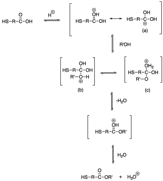 Although the carboxylic acid–hydroxyl reaction to form an ester is, perhaps, one of the best documented and most well-known organic chemistry reactions, its utilization for ester polythiol formation is restricted by numerous side reactions, as in transesterification. Kemmerer et al [87]. claim that direct esterification can be displayed at low temperatures.