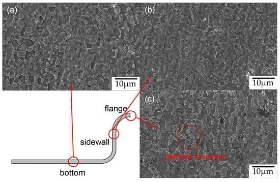 Microstructure of (a) the bottom of the formed part; (b) the sidewall; (c) the flange.