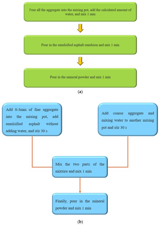 The conventional mixing method of the emulsified asphalt mixture is shown in Figure 3a.