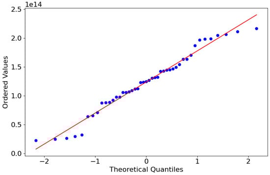 Further scrutiny employing a Q–Q plot (Figure 4) revealed many data points aligning closely with the reference line for a normal distribution, primarily in the central plot region. However, deviations at the extremes indicated the presence of heavy tails that the Box–Cox transformation could not fully normalize.
