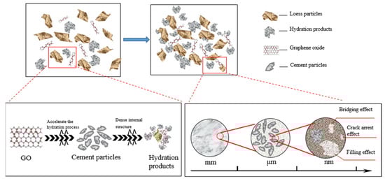 Schematic diagram of the mechanism of GO-reinforced soil–cement material.