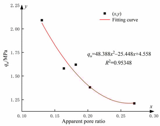 The relationship between the UCS and the apparent pore ratio qu (see Figure 17) can be fitted as follows: