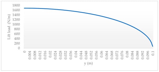 The numerical simulation of wing structures is performed on an ANSYS workbench 21. Initially, the base wing modeled with the conventional spar–rib was analyzed for wing-tip deflection and to determine if von Mises stress was less than the allowable design stress (167 MPa). This allowable stress is calculated from the tensile yield strength (Table 1) of the material used with the factor of safety 1.5. The general characteristic of the UAV considered is given in Table 1, while the final detail dimensions of the base-wing design are presented in Section 2.1. The corresponding variable wing lift load was obtained using Schrenk’s Approximation [54,55,56] for design optimization, as shown in Figure 1. The lift distribution is calculated at level flight conditions as per the European Aviation Safety Agency (EASA) CS–VLA [57] recommendation with the load factor of possible extreme conditions [58,59]. The optimized lattice-infilled structures were also analyzed for tip deflection, stress distribution, and concentration.