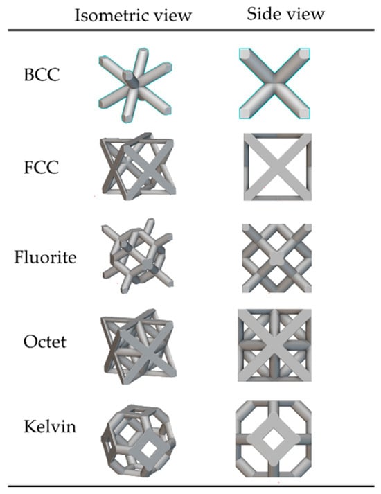 - Park, K.-M.; Min, K.-S.; Roh, Y.-S. Design Optimization of Lattice Structures under Compression: Study of Unit Cell Types and Cell Arrangements. Materials 2022, 15, 97. [Google Scholar] [CrossRef] [PubMed]