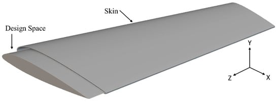 Wing structural optimization is a challenging task involving many individuals and its own design parameters and constraints. There has been significant research reported on reducing the weight and increasing the aeroelastic performance of the aircraft wing [5,6,7,8]. The structural optimization of aircraft wings using numerical optimization has been traced back [9,10,11,12]. There are different ways of conducting wing structural design. One of the most common, conventional ways is arranging the wing box components’ spars and ribs in a perpendicular outline. The proper adjustment of the location and thickness of these components can lead to a lightweight structure with improved mechanical performance. However, this method is limited to keeping the location, orientation, and number of components fixed during the entire optimization process [13,14,15,16,17]. Another method is to keep the thickness constant and adjust the position and orientation of the wing box components, leading to an optimized structure with curved structures that can be treated as both spar and ribs [18,19]. Despite satisfactory design from this method, there is a possibility of ignoring possibly more efficient designs. Similarly, the other limitation of this method is the assumption that the FE model used depends on shell-based elements, which assumes that the wing box is composed of shell-based plates [1].