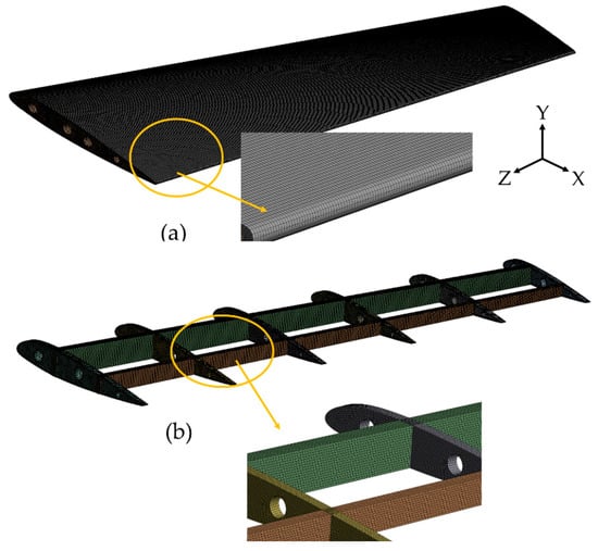 Finite element discretization of the wing structure (a) Skin (b) Internal structure.