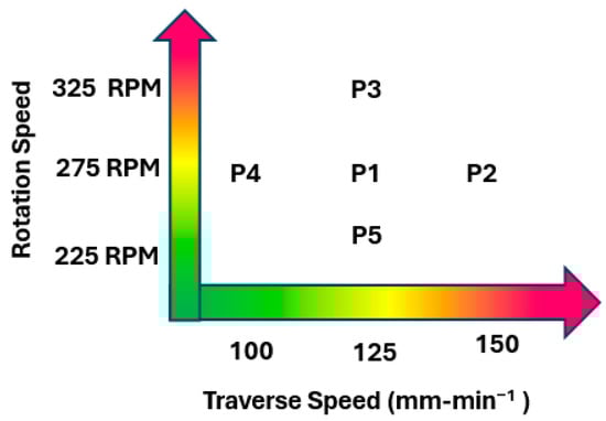 Nomenclature of specimens with respect to rpm and . For more details about specimens (P1–P5) please refer to Table 1.