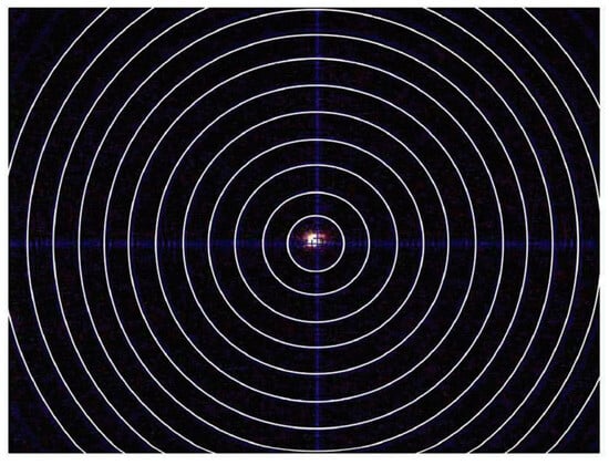 Laser spot with a crosshair. The distance between each circle is .
