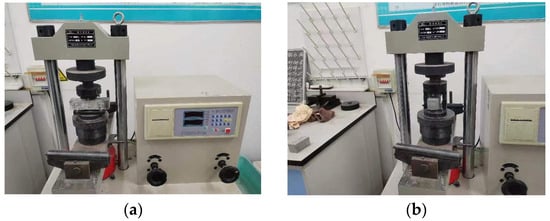 For the dry–wet alternation (N-DA) experiments, the same procedure as that used for NaCl F-C was used to immerse the specimens in NaCl. After soaking, the specimens were transferred to a concrete corrosion resistance dry–wet cycle tester supplied by Zhejiang Miaoda Instrument Manufacturing Co., Ltd., Shaoxing, China. During each D-A cycle, a specimen was placed in a solution of NaCl or Na2SO4 for 8 h; after this, the specimen surface was dried with a rag. The specimen was then dried at 80 °C for 36 h, followed by a 2-h cooling period. Figure 5 depicts the process of Na2SO4 D-A (NS-DA). The mechanical strengths were measured per 100 N-FC, 10 N-DA, and 10 NS-DA, using the process described in Section 2.3 above.
