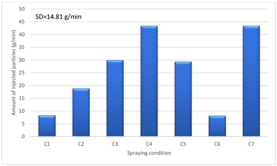 Number of injected particles (g/min) for different spraying conditions.