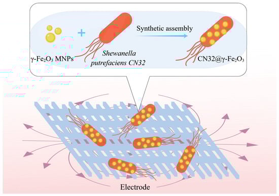 Schematic diagram of the coupling EMF of S. putrefaciens CN32 modified with γ-Fe2O3 MNPs.