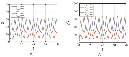 The above-coupled equations need to be solved numerically. Before solving Equations (27) and (28), we will obtain their dimensionless forms by non-dimensionalizing the equations through: