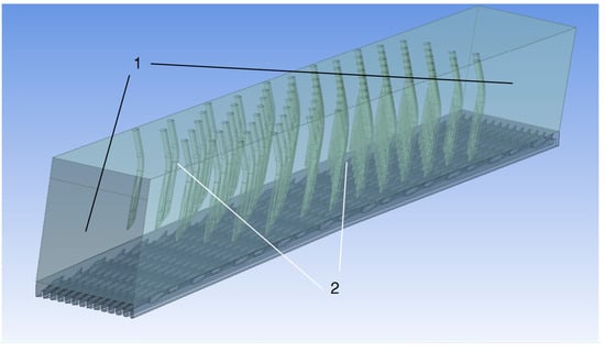 The boundary type of the simulation airflow domain: 1—the rotational/periodic symmetry plane group of the left and right surfaces; 2—the mirror symmetry plane group of the front and back covers.