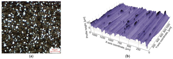 Figure 2. Initial characteristics of the machined titanium alloy Ti-1023 specimen: (a) initial metallographic microstructure and (b) initial surface topography of the machined specimen.