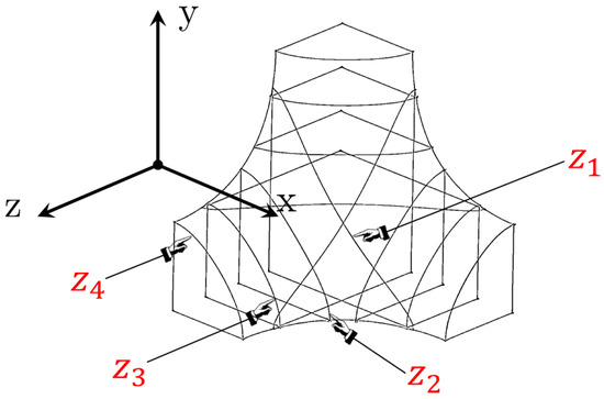The four curves of the external boundary at the z* locations (Figure 1) can be expressed by means of Equation (2) as follows: