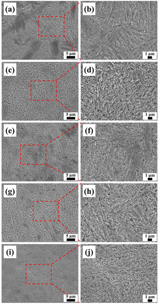 - The MEA achieved a well-balanced combination of hardness, strength, and toughness after the heat treatment. Following aging at 450 °C for 4 h, it exhibited impressive mechanical properties, including a hardness of 45.7 HRC, a UTS of 1535.7 MPa, a YS of 1489.3 MPa, and an El of 8.1%.
