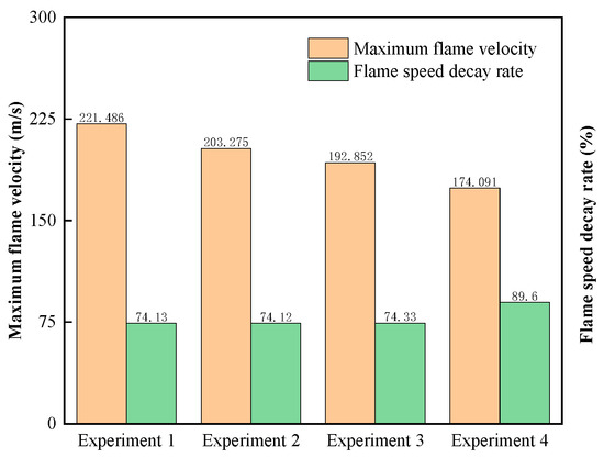 The blocking effect of the experimental material on the flame propagation velocity can be compared with the flame propagation velocity decay rate as follows:
