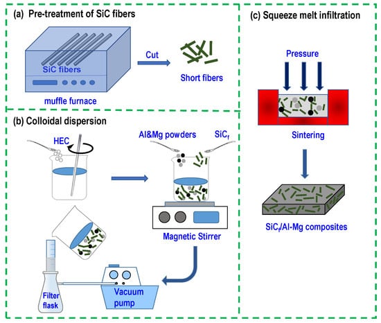 2.2. Fabrication of SiCf/Al-Mg Composites