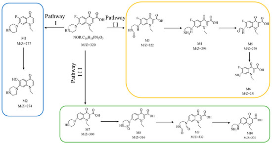 The possible degradation pathways of NOR.
