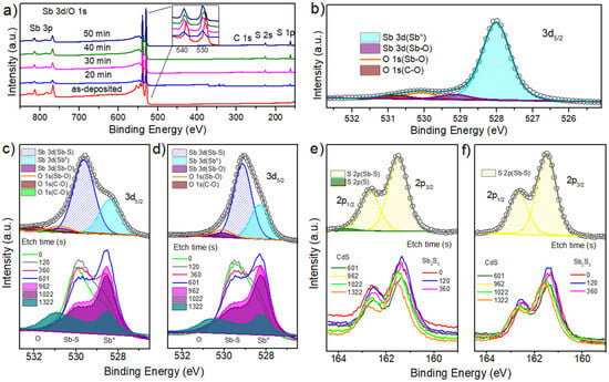 - Gaoa, C.; Huangb, J.; Lia, H.; Sunb, K.; Laia, Y.; Jiaa, M. Fabrication of Sb2S3 Thin Films by Sputtering and Post-annealing for Solar Cells. Ceram. Int. 2019, 45, 3044–3051. [Google Scholar] [CrossRef]