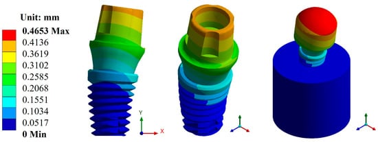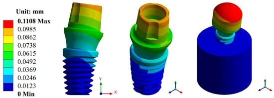 Total general displacement for the Universal abutment type (Ti6Al4V).