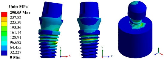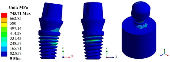 von Mises stress for the Universal abutment type (Ti6Al4V).