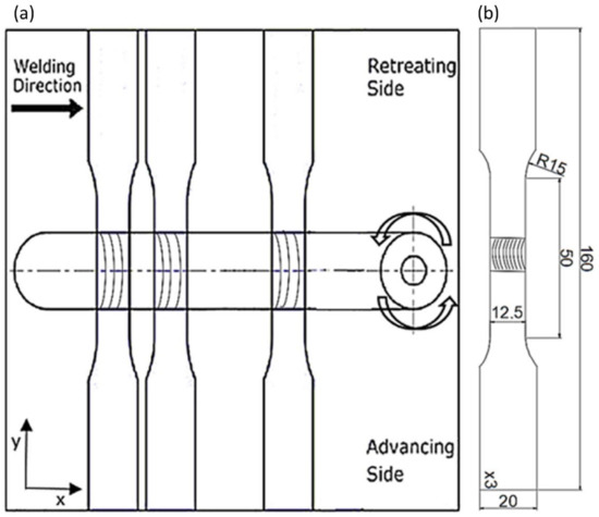Additionally, the joint efficiency was also calculated as the percentage ratio of the tensile strength of the weld to the tensile strength of the basic material from Equation (2).