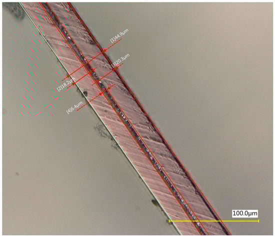 The photos were taken using a VHX 700 digital optical microscope Keyence Ltd., (Osaka, Japan). Microscopic observations revealed the existence of the following three layers: an intermediate layer, a barrier layer, and a metallized layer (the ABA-type film). After the production cycle, the process residues and waste film were subjected to a thickening (agglomeration) process and then, re-granulation.